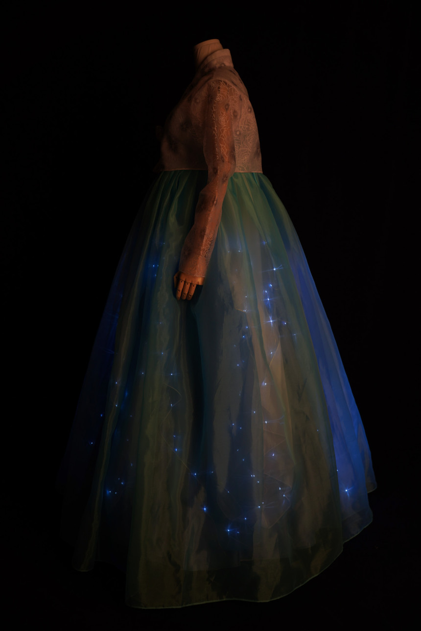 ※ 한복 치마에 작은 LED가 부착되어 있습니다.